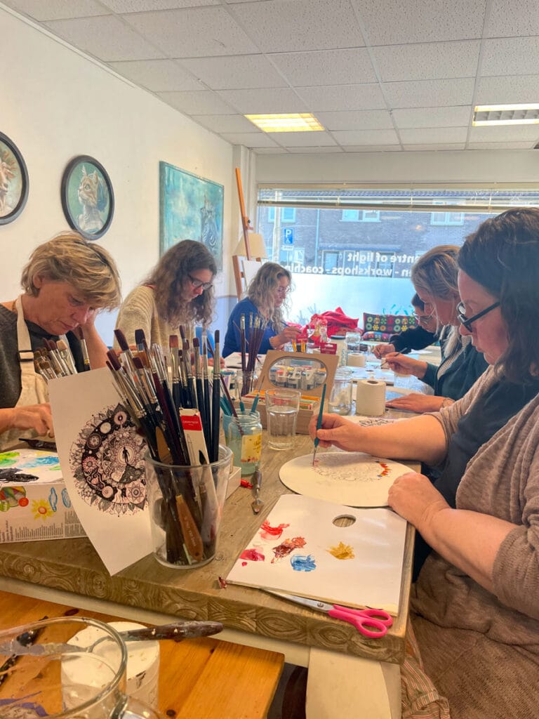 Materialen: zelf meenemen. Twijfel je waarmee je wilt werken? Dan kun je ter plekke gebruikmaken van aanwezige acryl- en olieverf (€2,50 per palet).